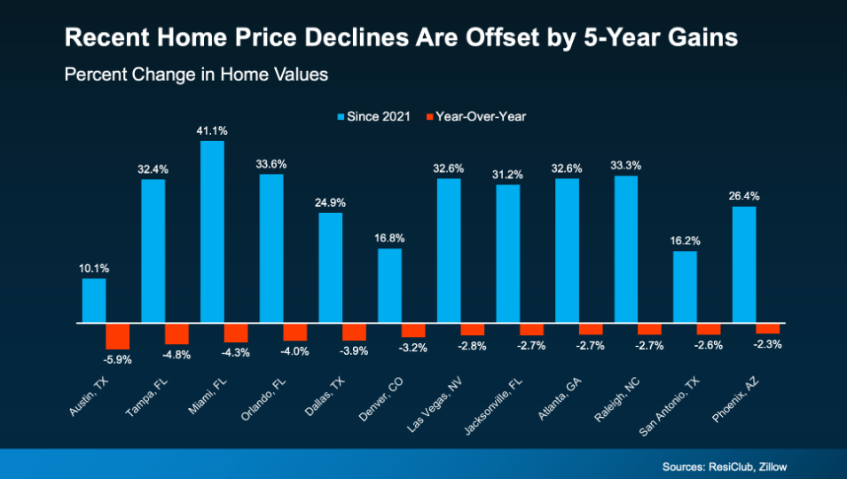 And even in the markets experiencing mild declines, the drops aren’t enough to cancel out the big gains most homeowners have seen in the last 5 years(see graph below):