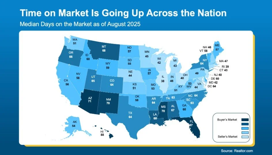 This explains why some sellers in these darker blue states are feeling frustrated when their listings linger, while others in tighter markets (like the lighter blue states) are still seeing their homes sell quickly.